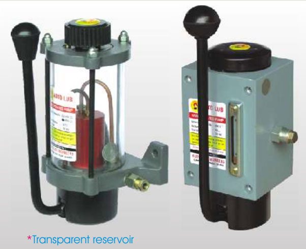 This is a piston pump with oil reservoir of different capacity. The pump discharges oil on pulling the handle. The piston returns to its original position by spring force and pressure generated approx. 1Kg/cm² in the lubrication line. When piston is operated oil is ejected out form the outlet of the piston pump under pressure.